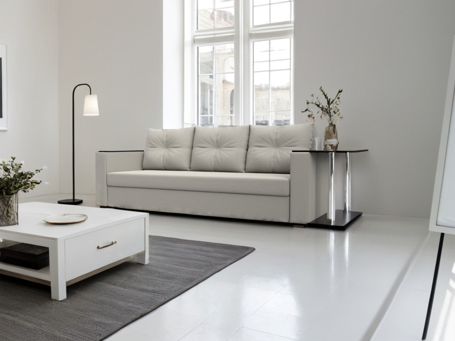 Диван-кровать «Атланта» со столом - просторное и уютное пространство, созданное для общения, просмотра ТВ и просто отдыха. Выбирая модель со столиком, вы сможете проводить время с максимальным комфортом, многократно повысив функциональность дивана. Поверхность столика — идеальное пространство для чаепития в приятной компании, а также место для множества актуальных мелочей — от ноутбука до косметики. В разложенном виде диван образует комфортное спальное место. Механизм раскладки «еврокнижка» поможет превратить прямой диван в удобную кровать за считанные секунды. Нужно потянуть за нижнюю часть сиденья и опустить спинку в образовавшуюся нишу. Изделие дополнительно оборудовано вместительным ящиком для постельных принадлежностей. Компактность и доминанта прямых линий впишут диван в большинство городских квартир.