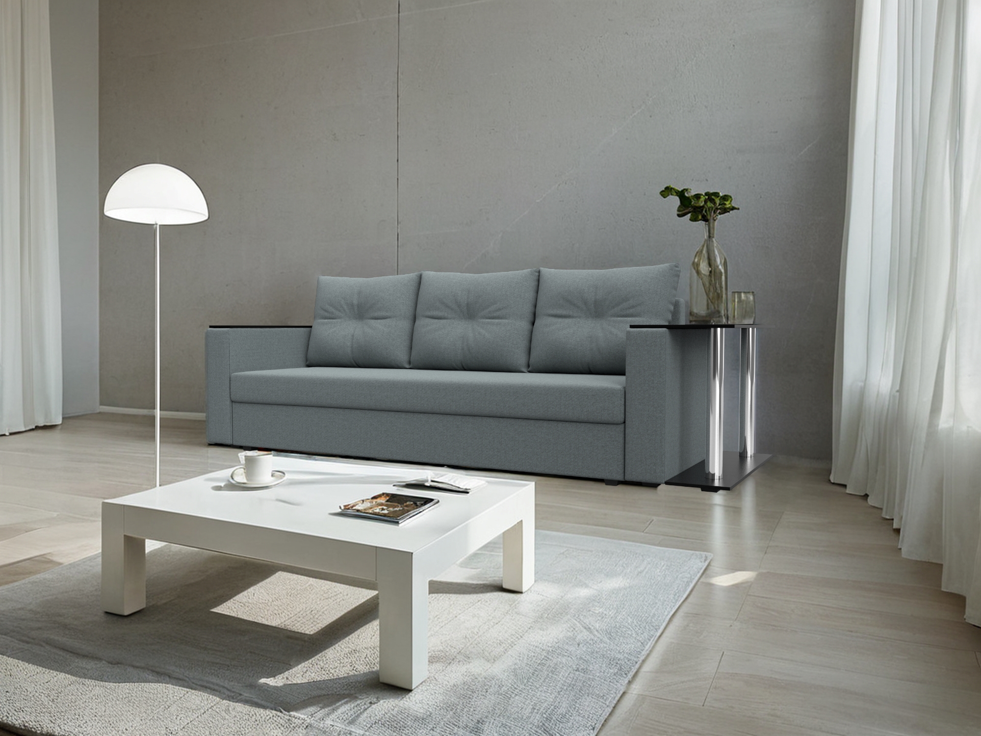 Отзывы о Столплит Диван прямой Атланта со столом справа, рогожка Амур Серый