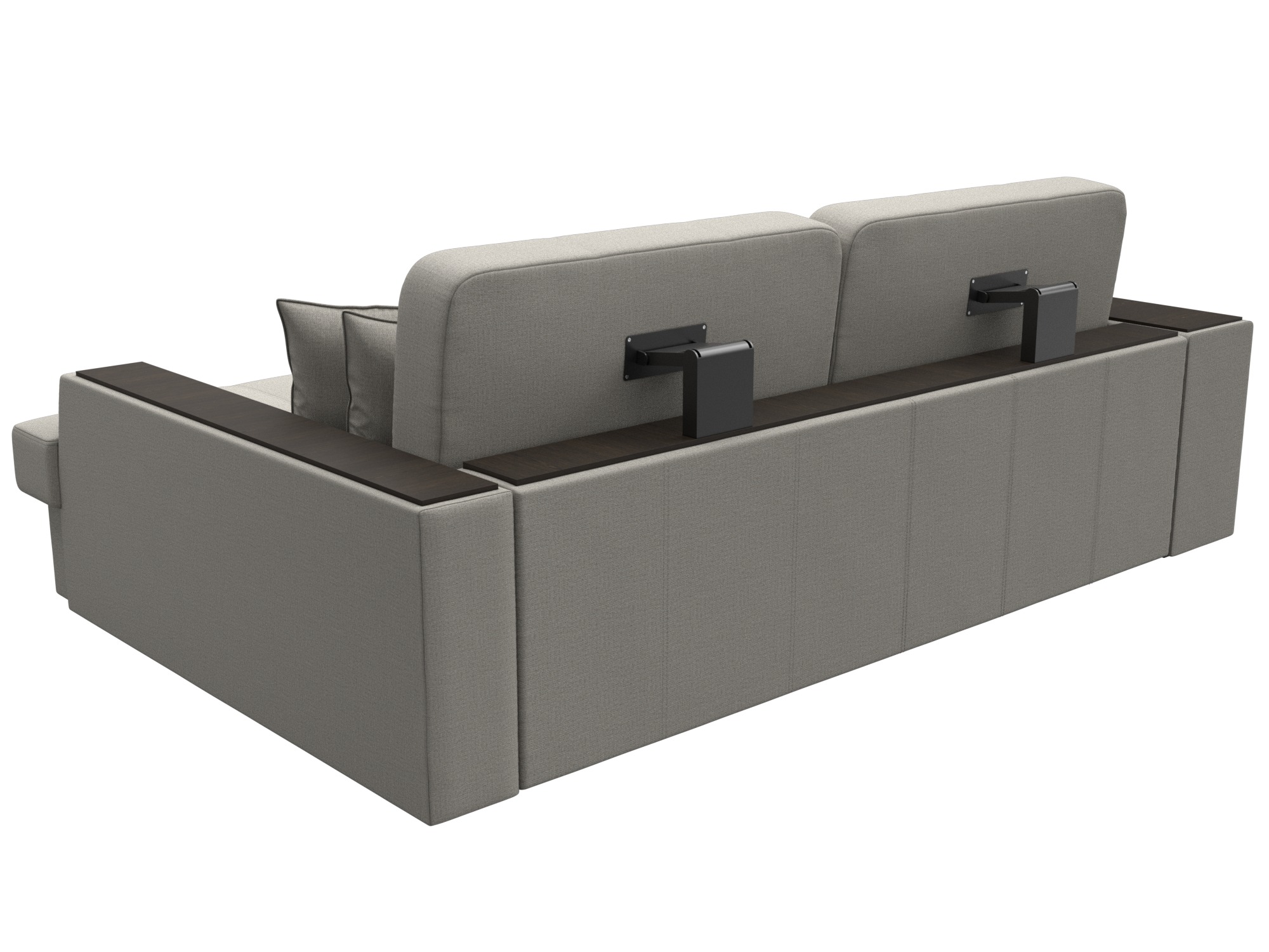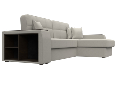 Шикарный угловой диван Брюссель удобен и функционален в использовании. Подлокотники выполняют роль мини-столиков. Одна из боковин дополнена книжными полками, декорированным «под дерево». Под длинной боковиной расположена ниша для белья. Изделие оснащено удобным механизмом трансформации в двуспальную кровать.