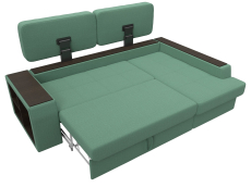 Шикарный угловой диван Брюссель удобен и функционален в использовании. Подлокотники выполняют роль мини-столиков. Одна из боковин дополнена книжными полками, декорированным «под дерево». Под длинной боковиной расположена ниша для белья. Изделие оснащено удобным механизмом трансформации в двуспальную кровать.