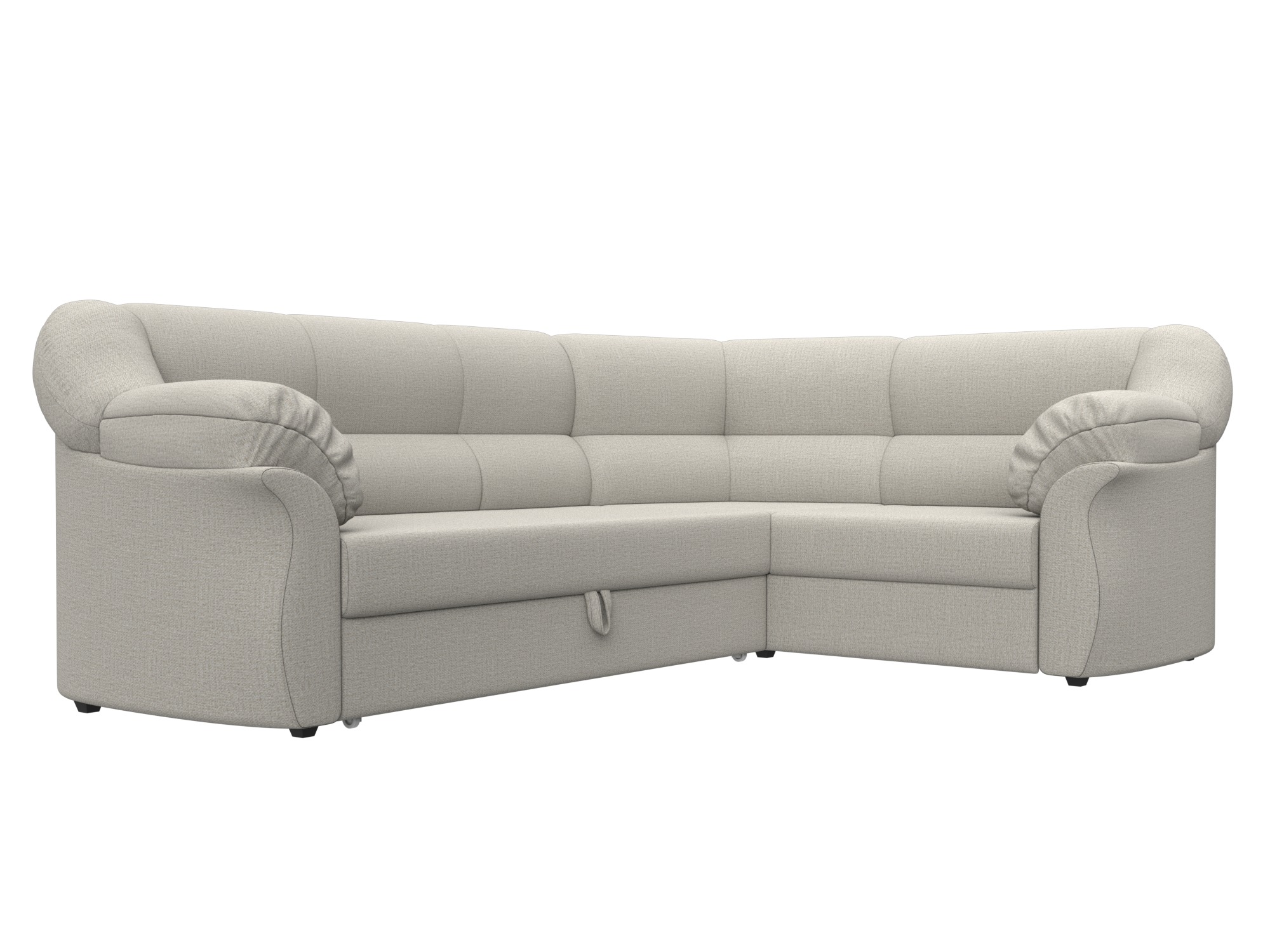 Карнелла – недорогой угловой диван, красивый снаружи и прочный внутри. Он устойчиво стоит на деревянных ножках, украшая своим присутствием гостиную. Спинка дивана украшена широкой каретной стяжкой. Угол можно расположить как справа, так и слева. Изделие легко раскладывается, образуя комфортное спальное место.Особенности современного углового дивана Карнелла: