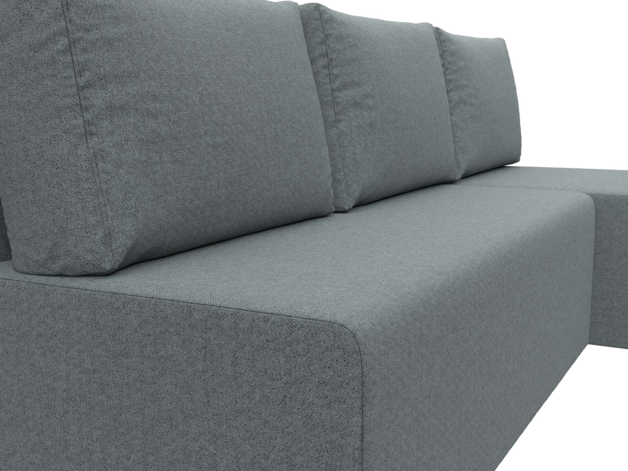 Поло – угловой диван со спальным местом без подлокотников. Спинка дополнена тремя мягкими подушками. Угол, по желанию владельца, размещается с правой или левой стороны. Для хранения белья в конструкции предусмотрен ящик.