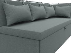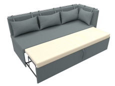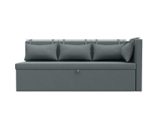 Метро – элегантный угловой диван с компактными параметрами. Для его размещения не потребуется много места. По дизайну схож со скамьей, дополненной небольшим углом. Обратите внимание на спинку, она украшена мягкими подушками с петельками, закрепленными на металлической трубе. Модель устойчива благодаря прочным пластиковым ножкам.Особенности современного дивана Метро с углом: