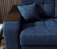 Оттоманка имеет оригинальную Г-образную форму, обтекающую подлокотник спереди. Это придаёт дивану изысканный вид и, когда диван установлен подлокотником к стене, отсутствует щель между оттоманкой и стеной, что удлиняет спальное место.Под декорами в подлокотниках скрыты два вместительных короба. В них можно хранить как постельное бельё, так и множество вещей, которым иногда сложно найти место, например, игрушки и даже инструменты. Мягкие приспинные подушки создают дополнительный комфорт во время сидения.Декоративные подушки при желании можно подложить под спину или голову. Задняя планка придаёт жёсткость конструкции и ограничивает соприкосновение со стеной во время сна.Благодаря утяжкам на сидении дивана ткань не растягивается и не собирается в складки.