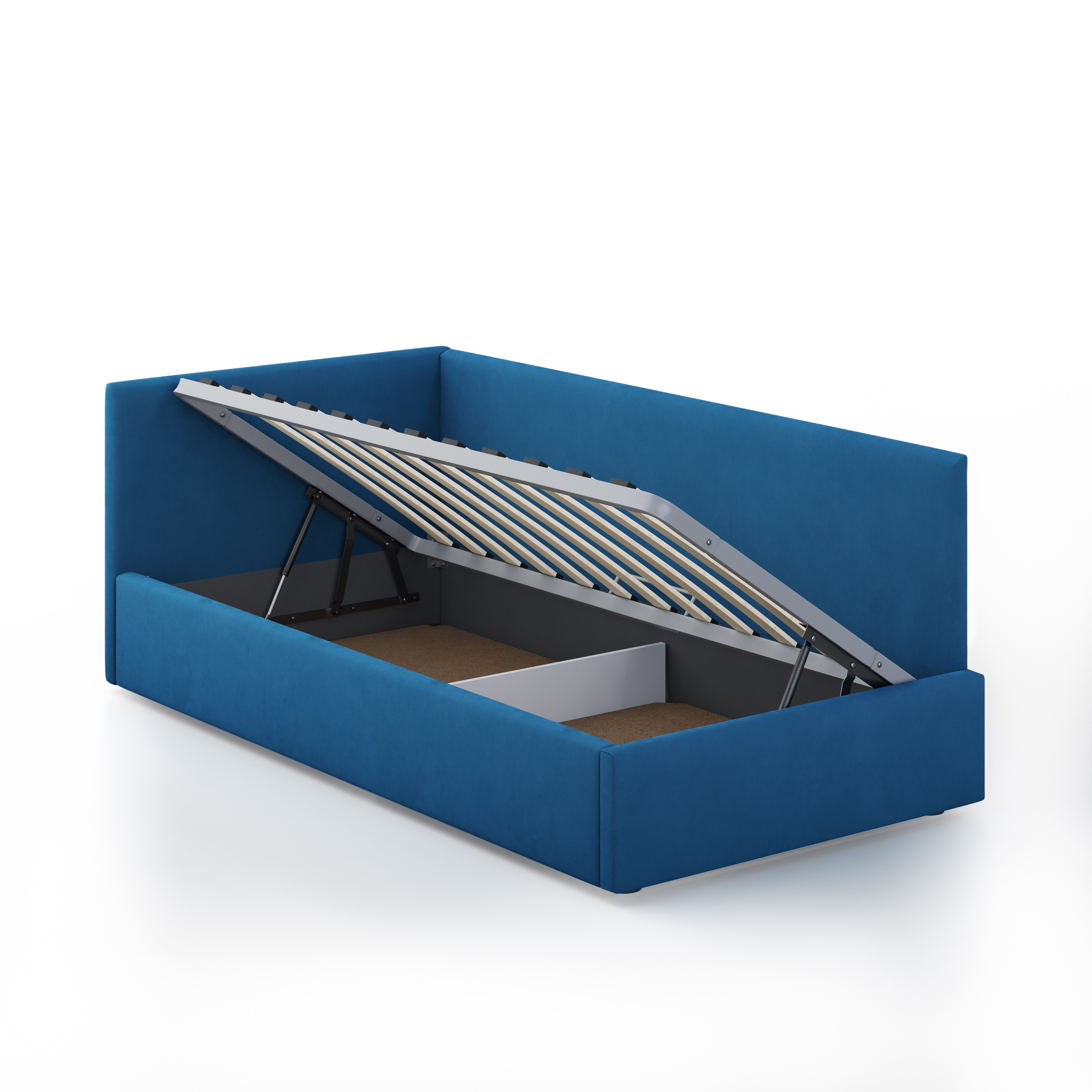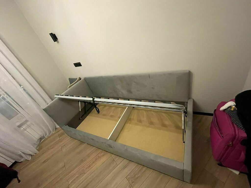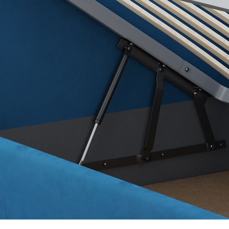 Односпальная кровать оснащена подъемным механизмом на газ/лифтах и вместительным бельевым ящиком, что позволяет экономить пространство в комнате и обеспечивает дополнительное место для хранения постельного белья и других вещей.