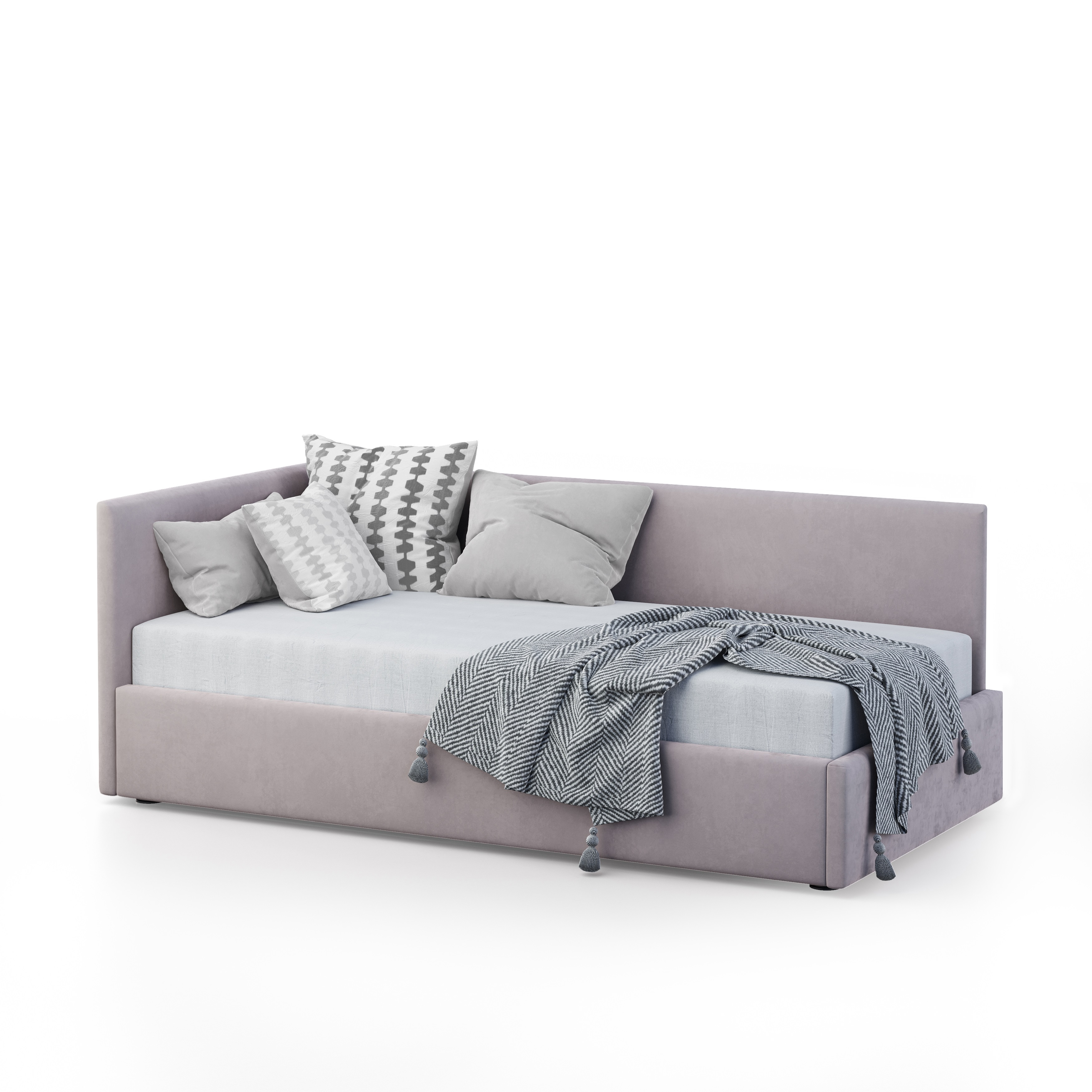 Односпальная кровать оснащена подъемным механизмом на газ/лифтах и вместительным бельевым ящиком, что позволяет экономить пространство в комнате и обеспечивает дополнительное место для хранения постельного белья и других вещей.