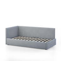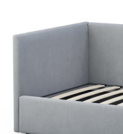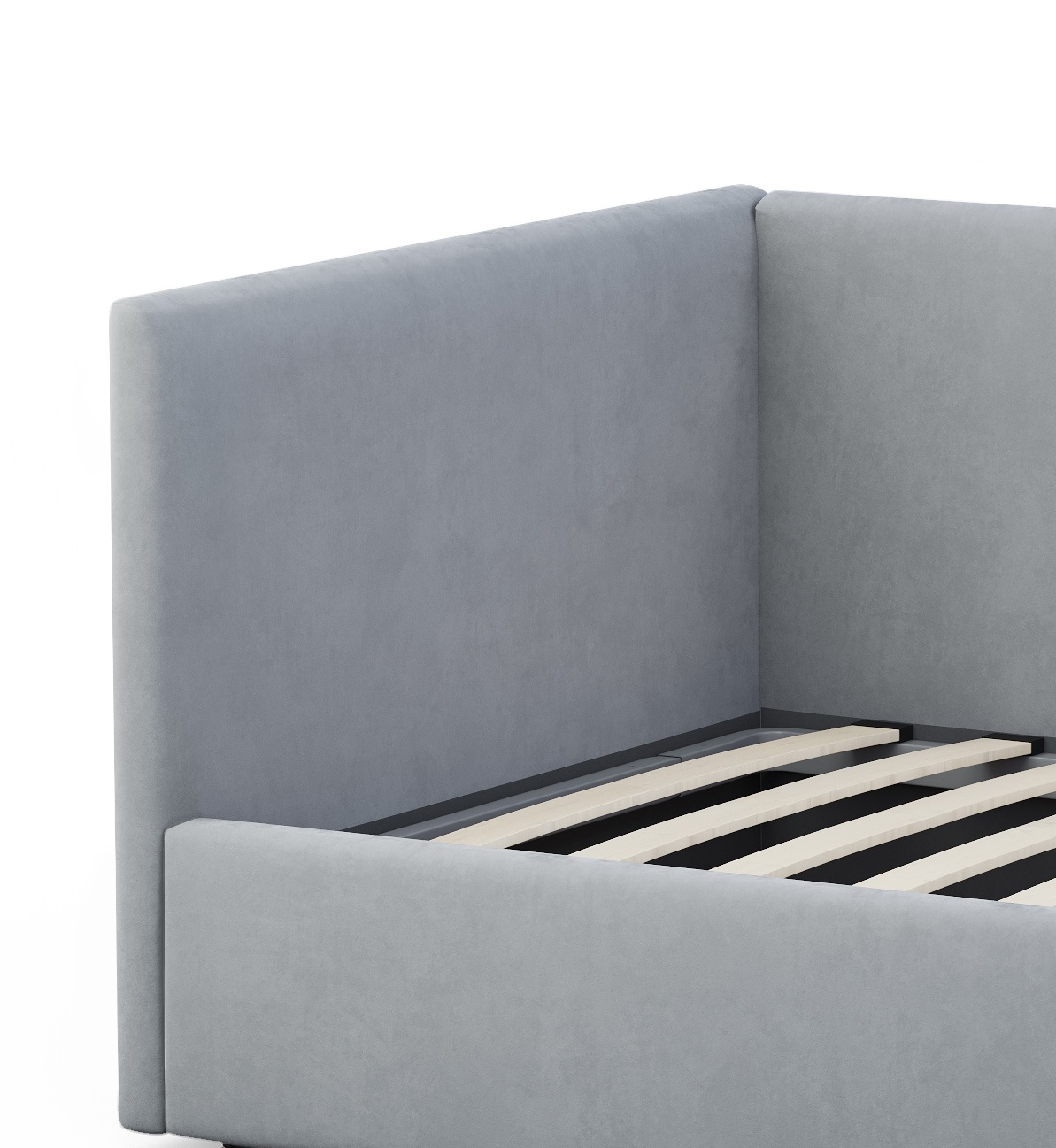 Каркас кровати выполнен из ЛДСП, а обивка из велюра, что делает ее антивандальной и устойчивой к износу.