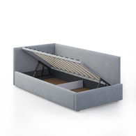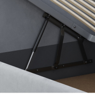 Кровать оснащена подъемным механизмом на газ/лифтах и вместительным бельевым ящиком, что обеспечивает дополнительное пространство для хранения постельного белья и других вещей.