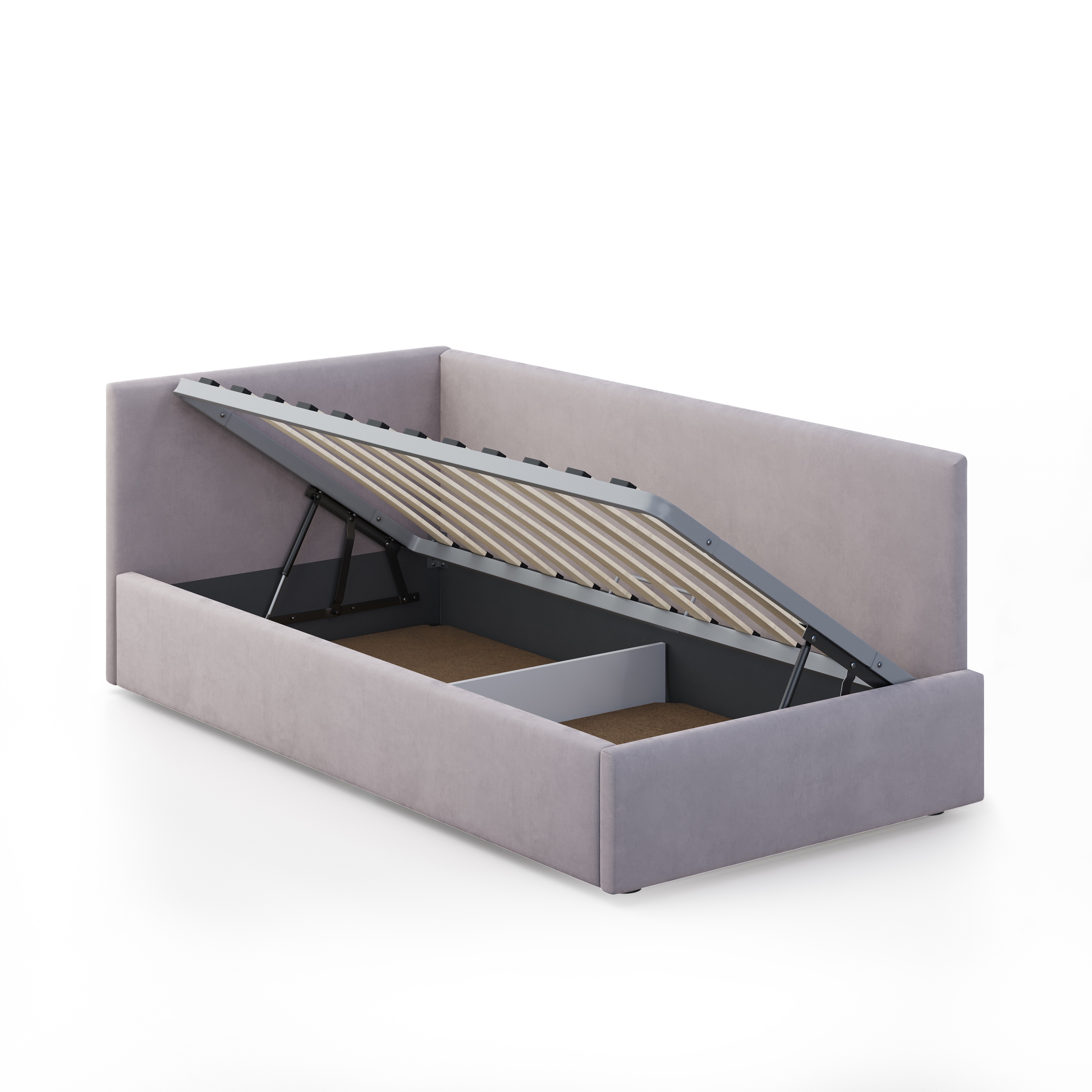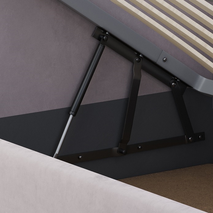 Кровать оснащена подъемным механизмом на газ/лифтах и вместительным бельевым ящиком, что обеспечивает дополнительное пространство для хранения постельного белья и других вещей.