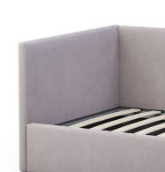 Каркас кровати выполнен из ЛДСП, а обивка из велюра, что делает ее антивандальной и устойчивой к износу.