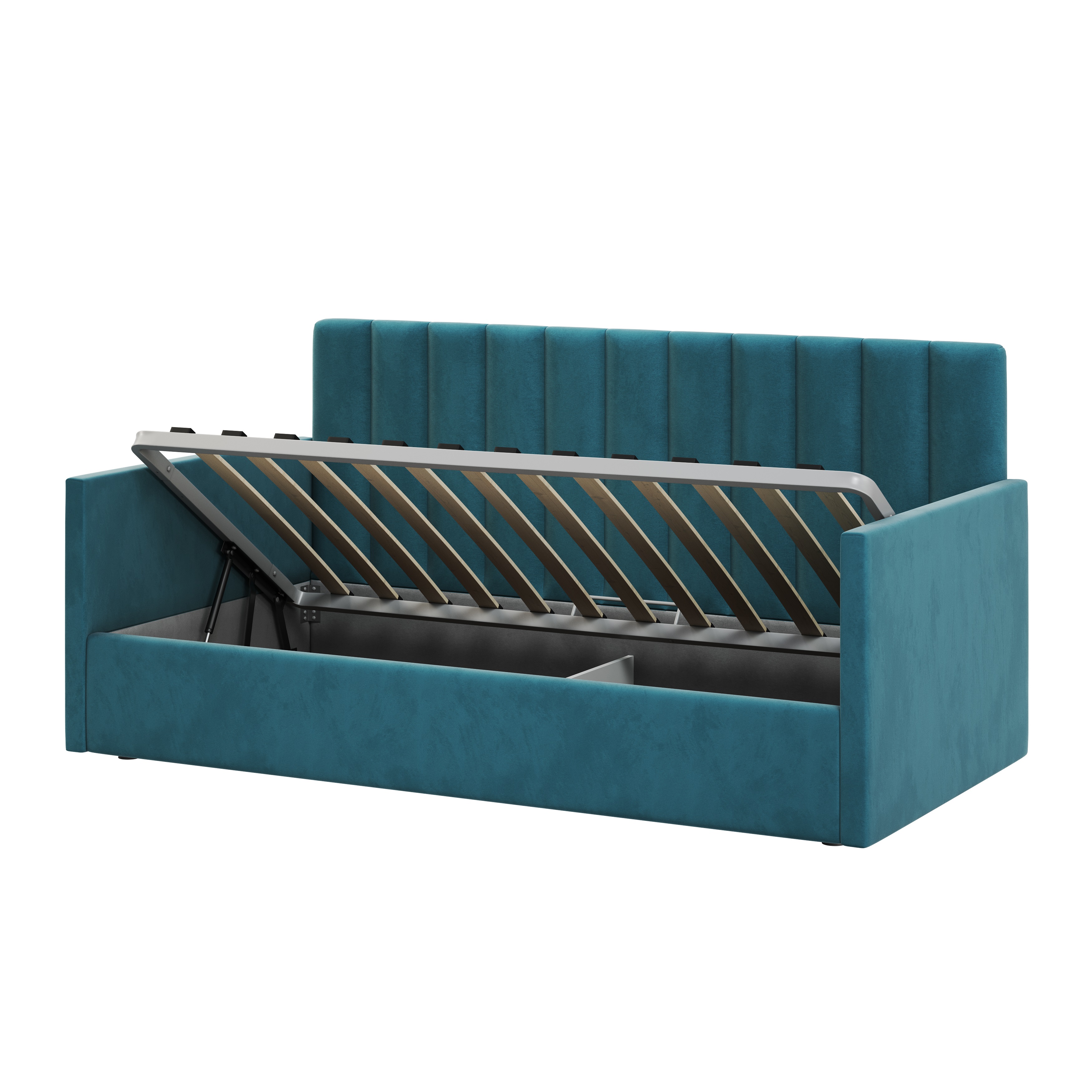 Кровать оснащена подъемным механизмом на газ/лифтах и вместительным бельевым ящиком, что обеспечивает дополнительное пространство для хранения постельного белья и других вещей. Это прекрасный способ сэкономить место в детской комнате и создать порядок.