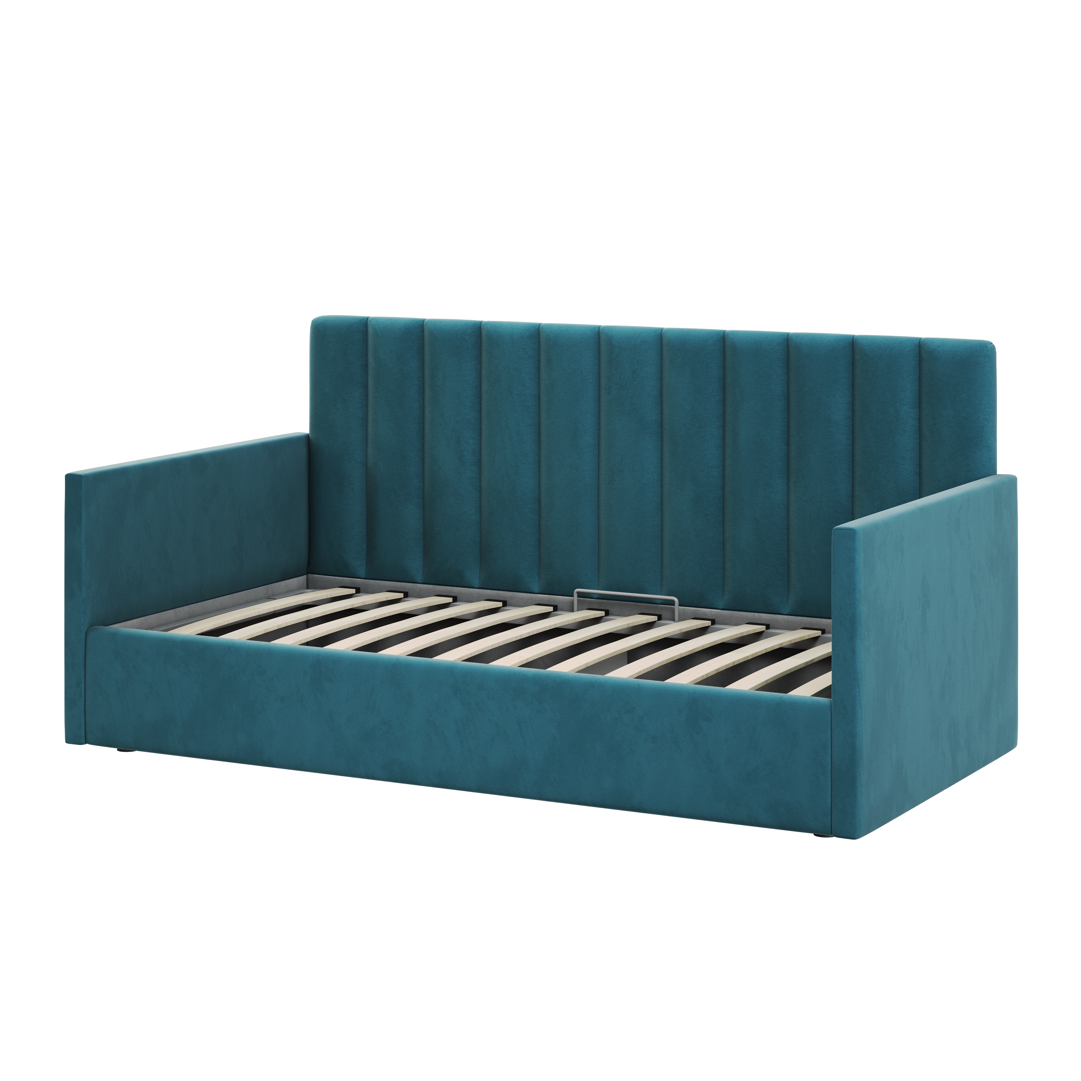 Кровать оснащена подъемным механизмом на газ/лифтах и вместительным бельевым ящиком, что обеспечивает дополнительное пространство для хранения постельного белья и других вещей. Это прекрасный способ сэкономить место в детской комнате и создать порядок.