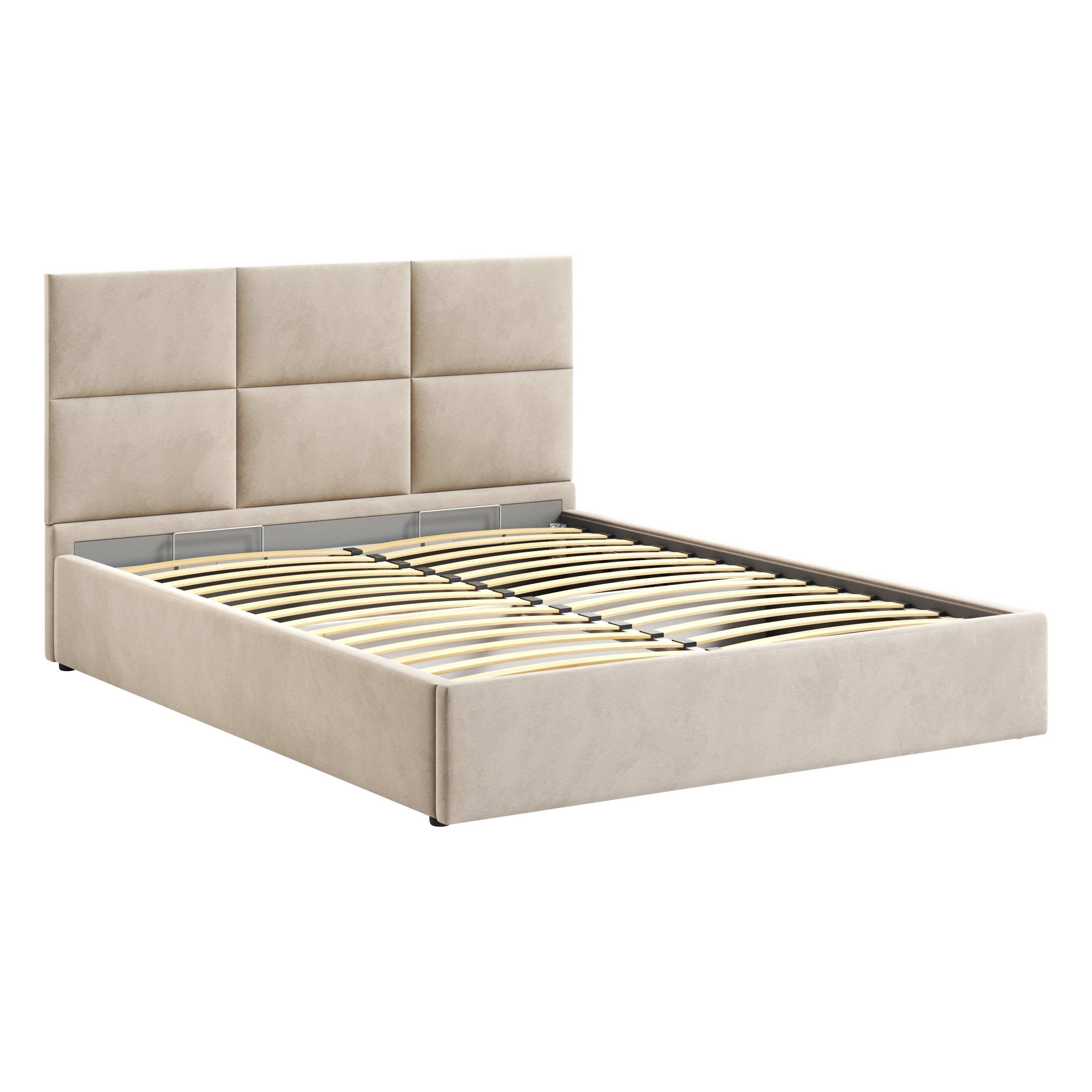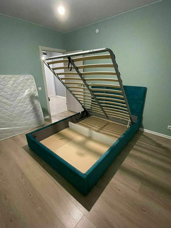 Кровать оснащена подъемным механизмом на газ/лифтах и вместительным бельевым ящиком, что обеспечивает дополнительное пространство для хранения постельного белья и других вещей. Это позволяет экономить место в спальне и поддерживать порядок.