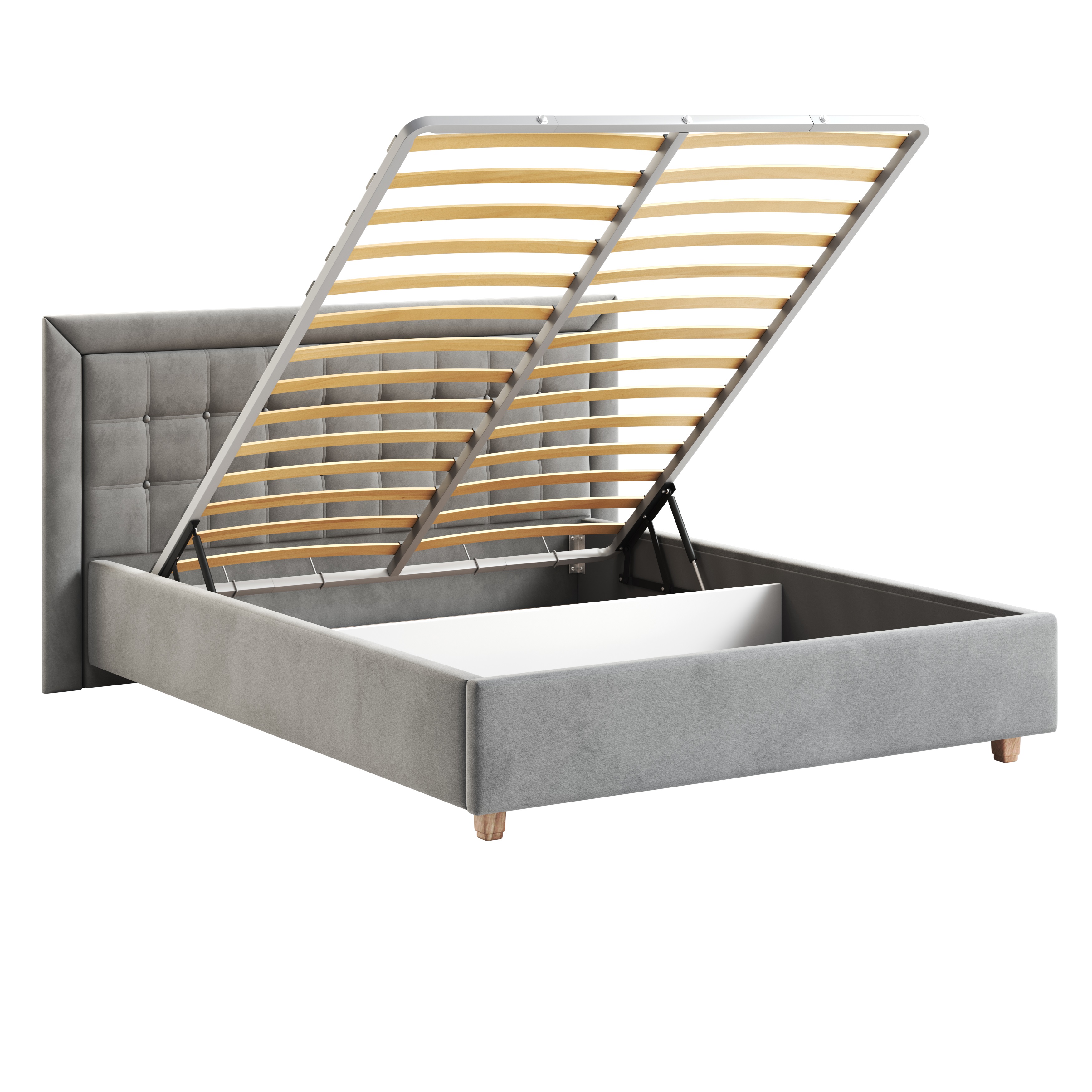 Кровать оснащена подъемным механизмом на газ/лифтах, что позволяет экономить пространство в комнате. Вместительный бельевой ящик обеспечивает дополнительное место для хранения постельного белья и других вещей.