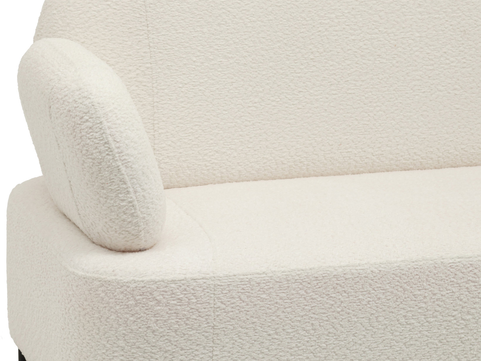 Обивка выполнена из простого в уходе букле - мягкого и нежного на ощупь. В качестве внутреннего наполнителя использован ППУ повышенной жесткости. Эластичные ремни в основании обеспечивают плавное погружение и комфорт при посадке.