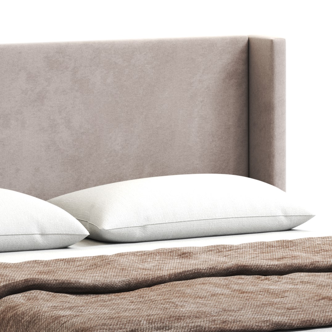 Кровать изготовлена из ЛДСП, что обеспечивает прочность и долговечность конструкции. Обивка из велюра искусственного светло-серого цвета придает кровати современный и стильный вид.