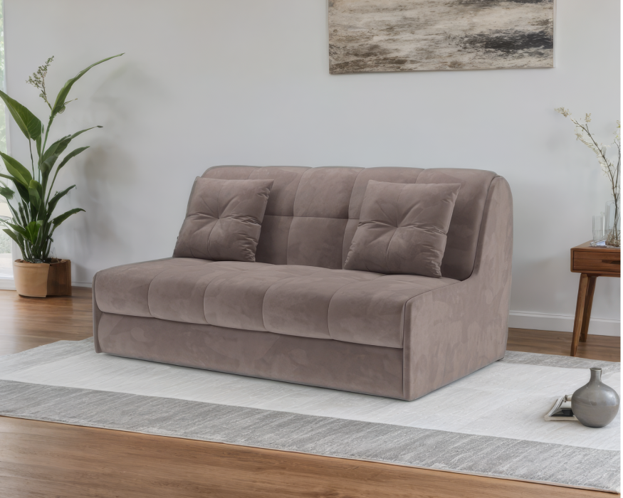 Мягкая спинка и декоративные подушки помогают создать атмосферу уюта и комфорта. Отсутствие подлокотников позволяет дивану «Барон №2» не занимать много места в разложенном виде.