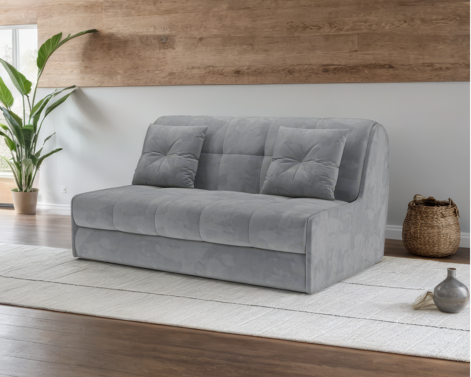 Мягкая спинка и декоративные подушки помогают создать атмосферу уюта и комфорта. Отсутствие подлокотников позволяет дивану «Барон №2» не занимать много места в разложенном виде.