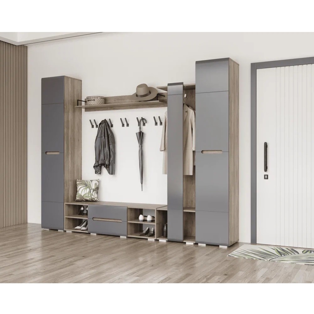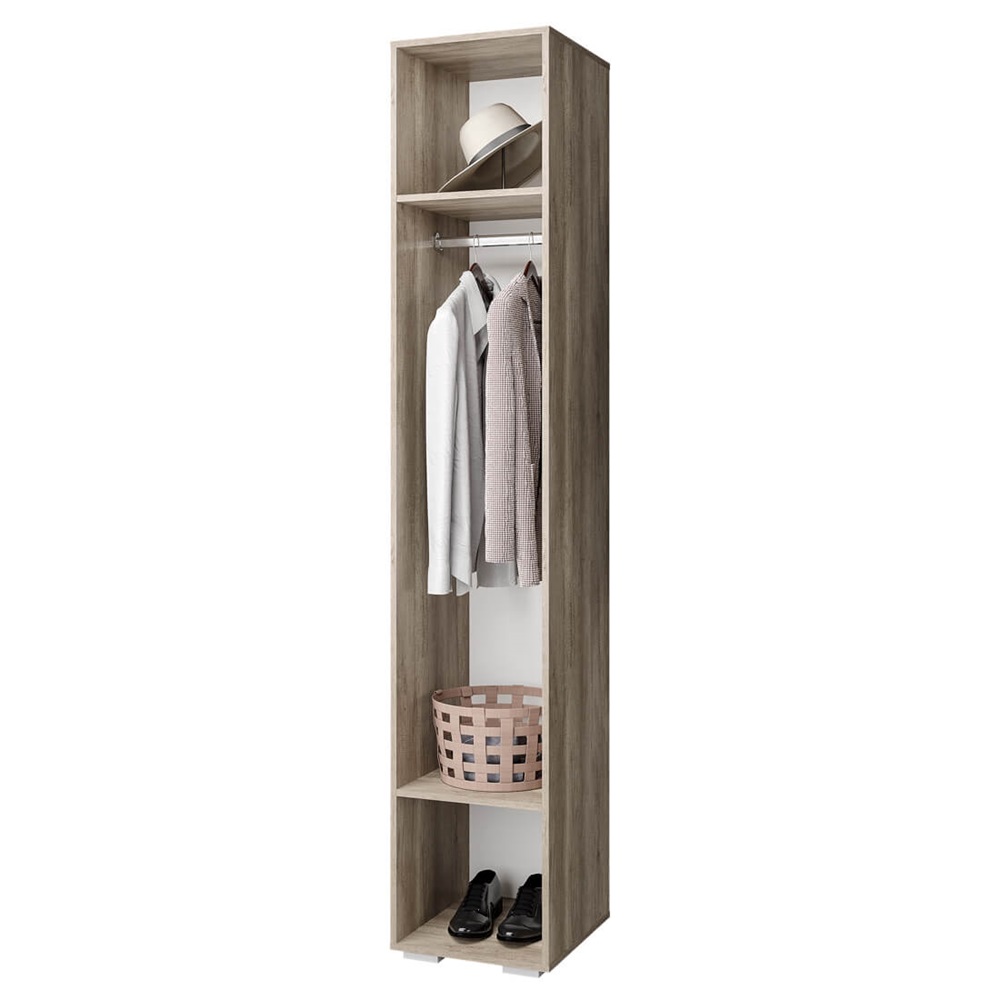 вместительный: имеет полки и нишу для одежды;