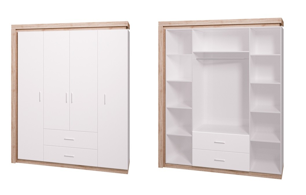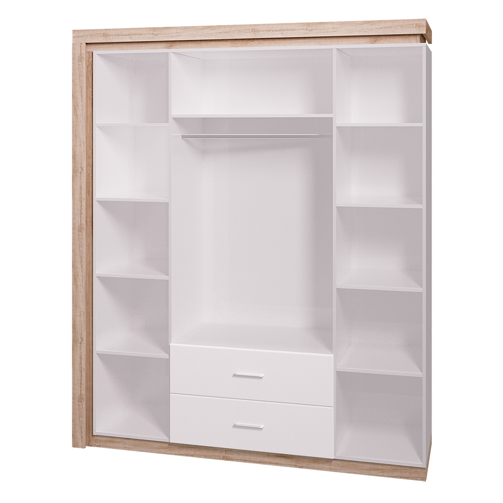 - Корпус ЛДСП 16 мм в декоре «Дуб Сакраменто» и фасад МДФ 16 мм в декоре «Белый снег»