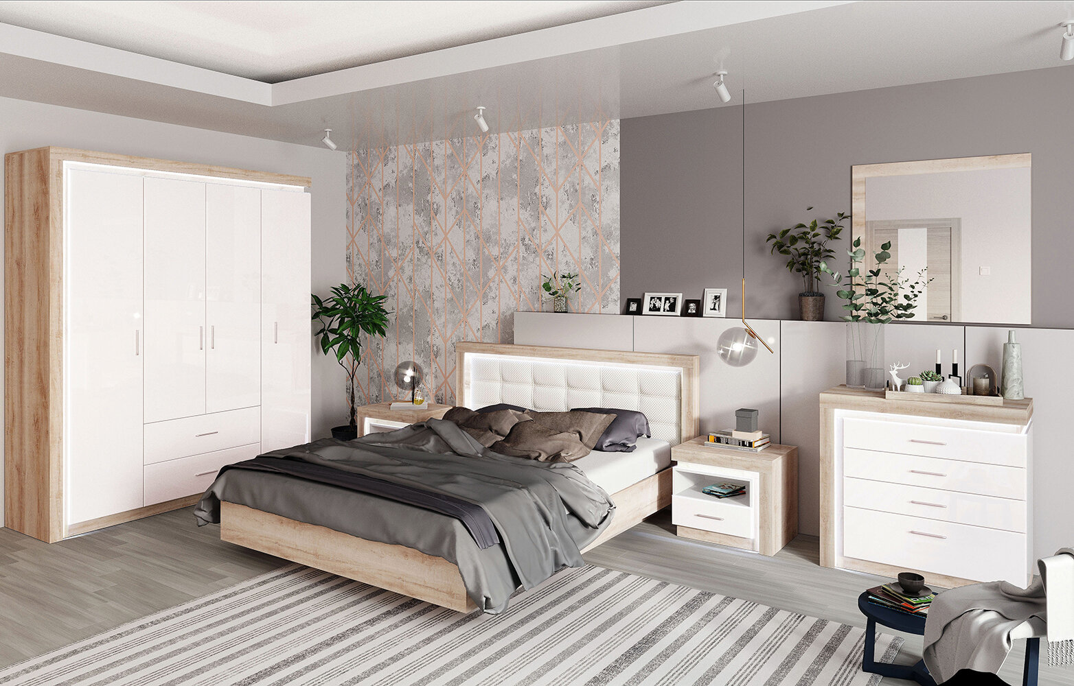 Модульная коллекция Люмен с эффектным сочетанием корпуса в древесном оттенке и белыми фасадами придадут вашему интерьеру легкости и свежести.