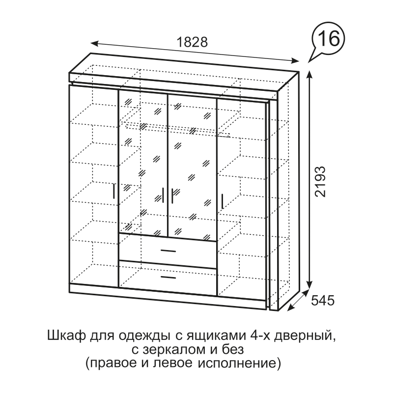 Шкаф 4-х дверный 16 Люмен Код I0000430786