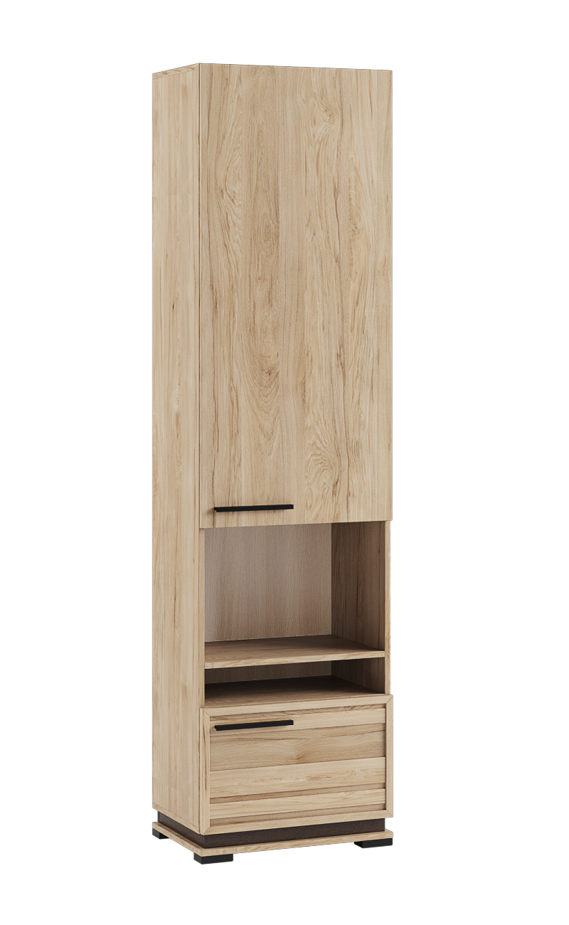 Пенал - незаменимый вид шкафа в любой гостиной. Шкаф-пеналМодена - отличный вариант для хранения вещей на закрытыхполках и в открытой секции. Прекрасно дополняет прочие модули коллекции и за счет своих габаритов вмещает большое количество предметов, от книг до домашней утвари и предметов декора. Нижняя дверца декорирована геометрическими вставками цвета ясень анкор светлый, что добавляет шкафу-пеналу стиля.