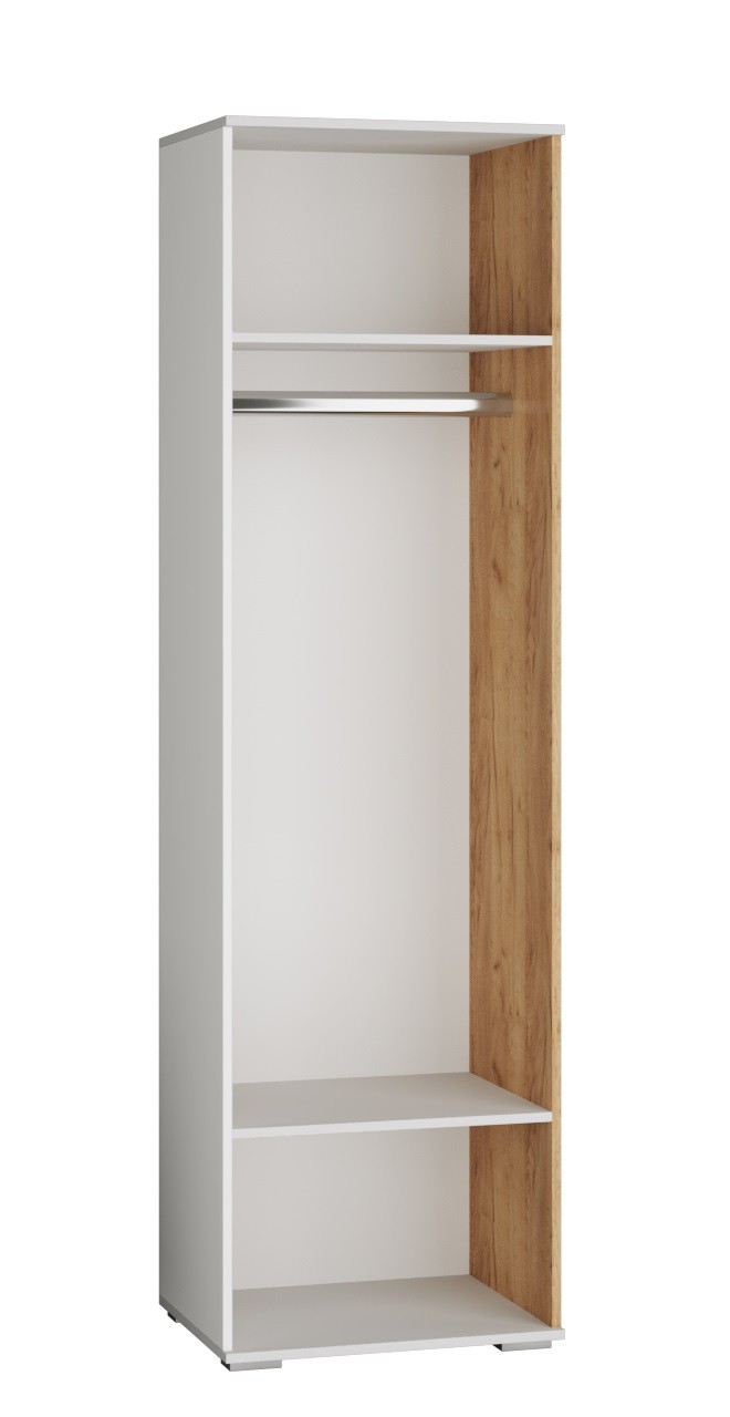 Ни каждая коллекция может похвастаться наличием вместительного шкафа для одежды. Шкаф из коллекции Оскар-18 - отличное решение для хранения одежды на плечиках. Внутри- две полки и вместительная продольная штанга. Шкаф Оскар-18 отличается и визуальной привлекательностью: декор с текстурой натурального дерева дуб крафт золотой гармонично дополнен светлым ателье.