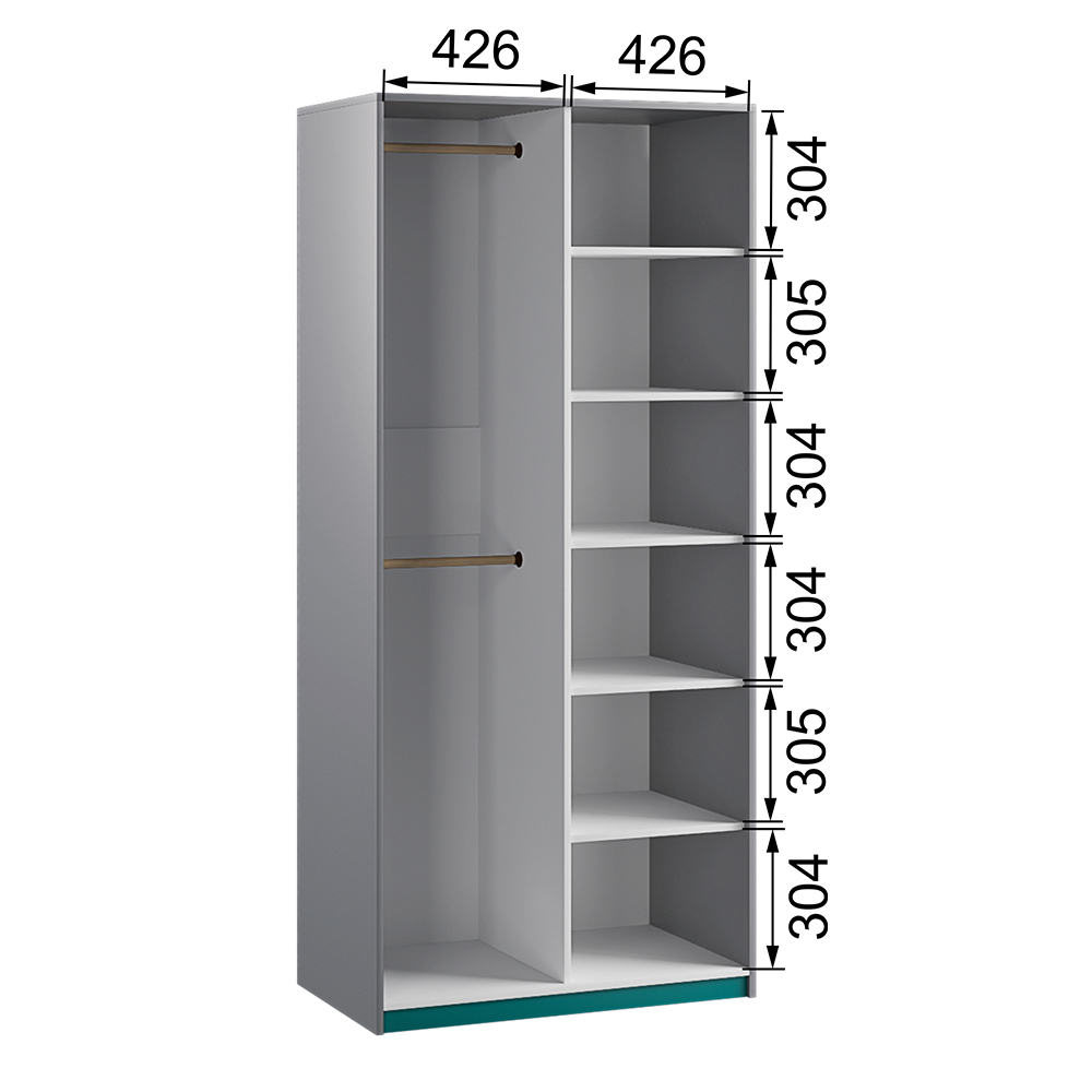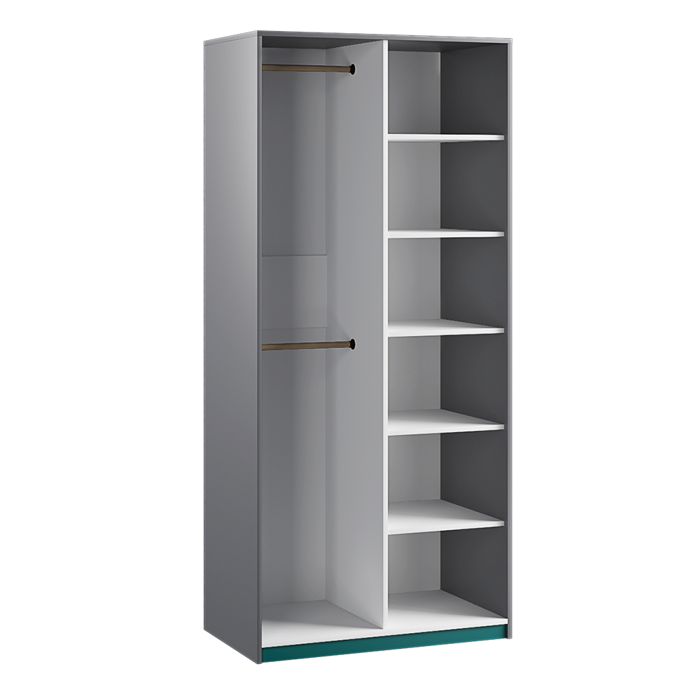 К шкафу в детской предъявляются особые требования. Он должен быть не только вместительным и удобным в использовании, но и визуально нравиться ребенку и сочетаться с интерьером комнаты. Шкаф универсальный из коллекции Кэнди именно такой! Имеет две ниши хранения за распашными дверями: в первой расположены полки, а во второй - две продольные штанги. Таким образом, и для одежды на плечиках, и для вещей в сложенном виде, и даже для белья ребенка хватит места. Шкаф выполнен в том же декоре, что и остальные модули коллекции.