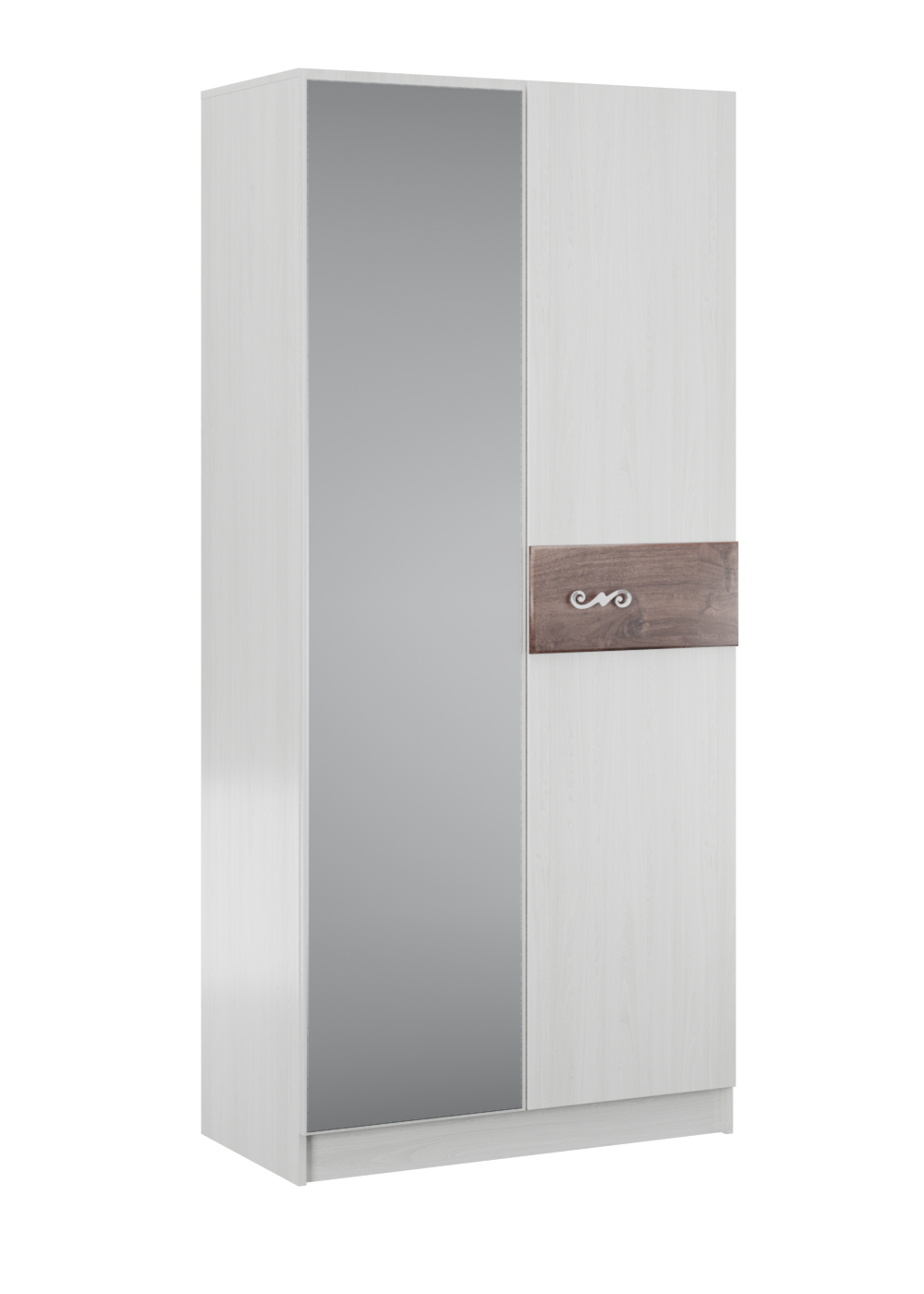 В поисках универсального решения для организации хранения в спальне обратите внимание на двустворчатый шкаф Мадлен. Наполнение шкафа - две продольные штанги и комплект полок. Изюминкой шкафа выступает комбинированный фасад с зеркалом, который визуально расширит Вашу комнату и позволит держать внешний вид под контролем.