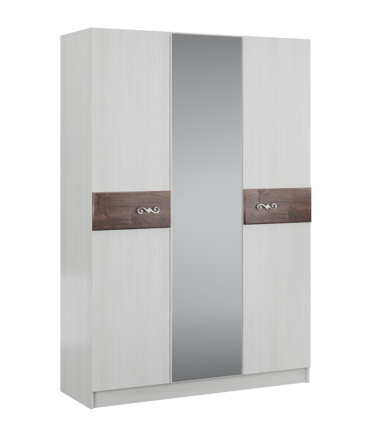 В поисках вместительного шкафа для спальни обратите внимание на трехстворчатый шкаф Мадлен. Наполнение шкафа - длинная продольная штанга и комплект полок. Всего одного такого шкафа будет достаточно, чтобы с комфортом разместить одежду на плечиках и вещи в сложенном виде. Изюминкой шкафа выступает комбинированный фасад с зеркалом, который визуально расширит Вашу комнату и позволит держать внешний вид под контролем.