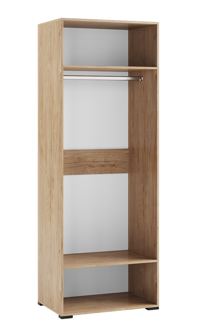 Организовать хранение одежды в малогабаритной спальне легко с помощью двустворчатого шкафа. Шкаф из коллекции Модена имеет продольную штангу и несколько полок. Одежда на плечиках, в сложенном виде и даже коробки с Вашими личными вещами найдут место и будут храниться в порядке. Шкаф особенно удобен для того, чтобы расположить в нем платья (высота модуля - 220 см).