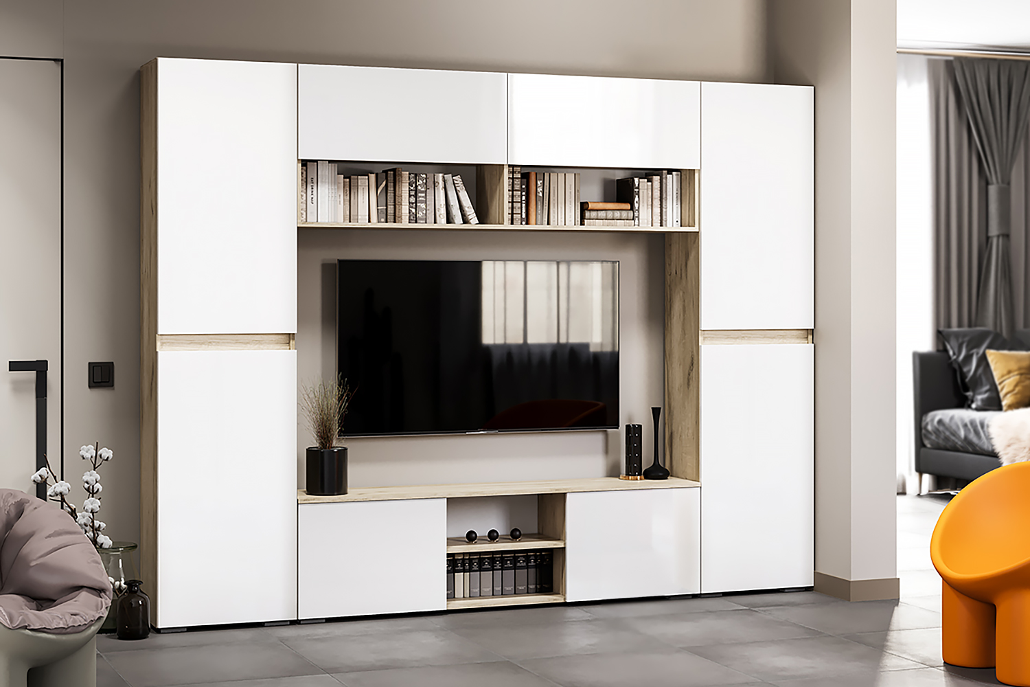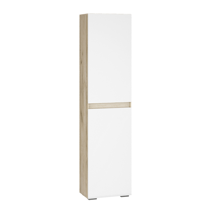 Шкаф-пенал из коллекции Вирола дополнит Вашу гостиную. Белые глянцевые фасады отлично сочетаются с корпусом в древесных оттенках.