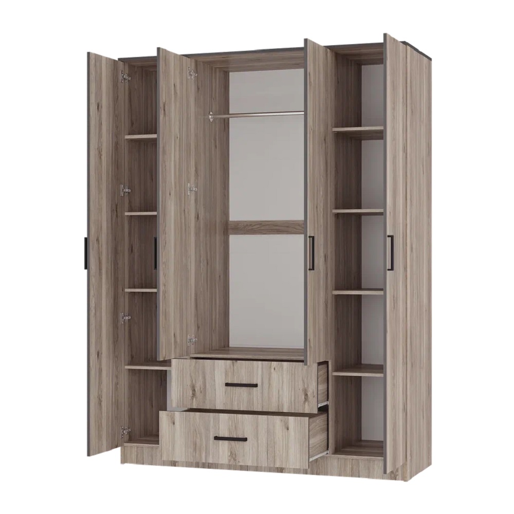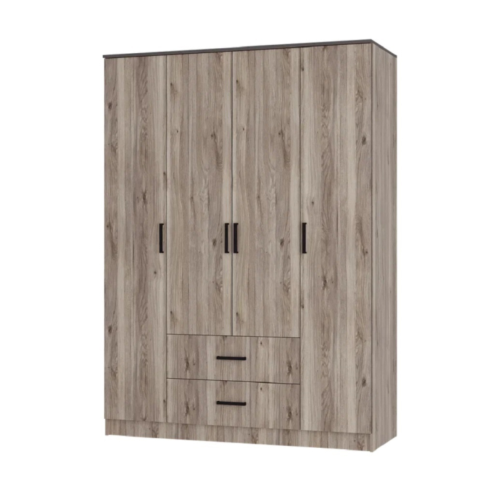 Четырехстворчатый шкаф "Титан" - это элегантное и функциональное решение в трендовом древесном декоре с текстурой дуба.
