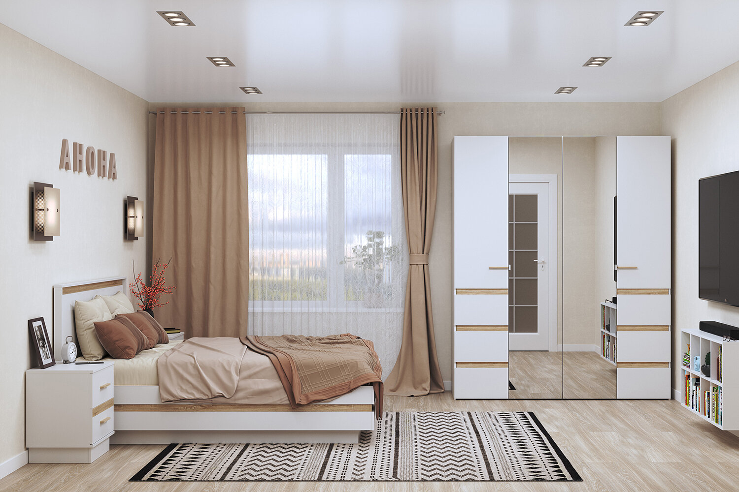 Спальня Анона станет вашим уютным уголком, где вы сможете отдохнуть после долгого дня и насладиться спокойным сном. Серия Анона выполнена в двух цветах: белый и антрацит с акцентными вставками в декоре дуб сонома.
