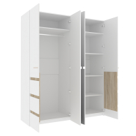 Шкаф распашной четырёхдневный с декоративными вставками дуб сонома. Особенно эффектно смотрится двери с зеркалами в сочетании с цветом антрацит. За фасадами вы найдете отсек с хромированной штангой и антресолью и секцию с полками.