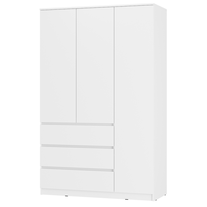 Шкаф 3-х створчатый Симпл ШК-08 - это стильное и функциональное решение для вашего интерьера. Его элегантный дизайн и современная отделка создают атмосферу свежести и простора. Внутреннее наполнение шкафа продумано до мелочей, создавая идеальные условия для хранения ваших вещей. Стационарная штанги позволят Вам с лёгкостью повесить любимую одежду, включая платья, рубашки и жакеты, обеспечивая им идеальный вид и доступность. Также шкаф оборудован тремя ящиками на шариковых направляющих.