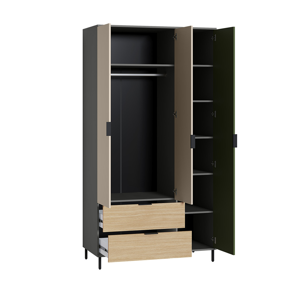 Шкаф 3-х дверный Марвэл – это идеальный выбор для тех, кто ценит сочетание функциональности и эстетики в интерьерном оформлении. Он не только добавит практичность в вашу обстановку, но и станет стильным акцентом в вашем доме. Шкаф оборудован просторными полками, ящиками и вешалкой-штангой, что обеспечивает удобное хранение вещей.