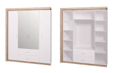 - Корпус ЛДСП 16 мм в декоре «Дуб Сакраменто» и фасад МДФ 16 мм в декоре «Белый снег», Зеркало.