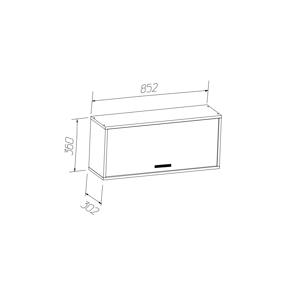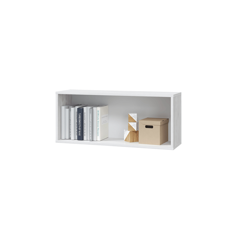 Навесной шкаф шириной 852 мм с откидным фасадом отлично подойдет для хранение книг и учебных материалов.