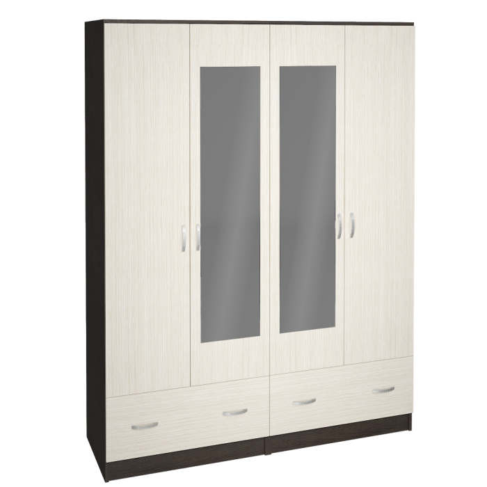Вместительный прямой шкаф с продуманным наполнением. Состоит из двух двустворчатых шкафов. Стационарная штанга, комплект полок и два выдвижных ящика – все Ваши вещи будут храниться в порядке.