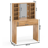 Габаритные размеры косметического стола (ШхГхВ): 90х40х143,2 см.