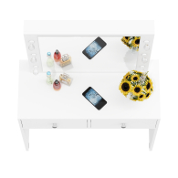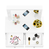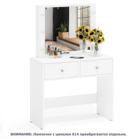 Под просторной столешницей расположены два выдвижных ящика на шариковых направляющих, которые обеспечивают плавное и бесшумное выдвижение. Ящики предлагают достаточно места для хранения косметики, аксессуаров и других мелочей. Благодаря этому все необходимые предметы будут аккуратно организованы и всегда под рукой.