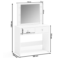 Габаритные размеры стола туалетного (ШхГхВ): 90х40х136 см.