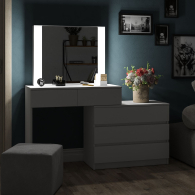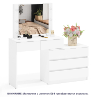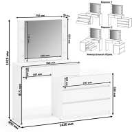 Туалетный столик имеет универсальную сборку - тумбу с 3 ящиками можно разместить как с левой, так и с правой стороны.