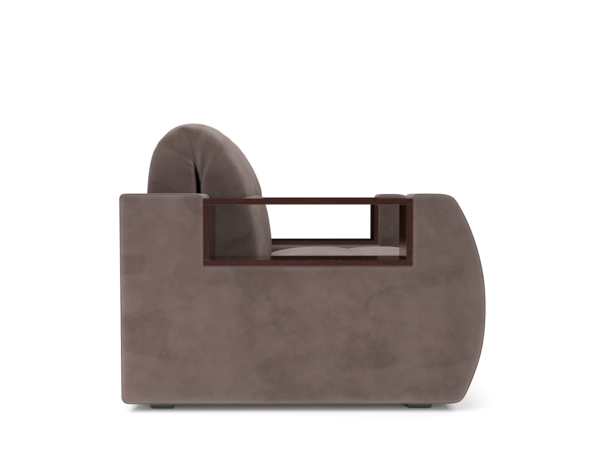 Особенностью модели являются функциональные полки, встроенные в подлокотники. Полки выполнены из ЛДСП цвета «Венге», размером 57 × 14 см.