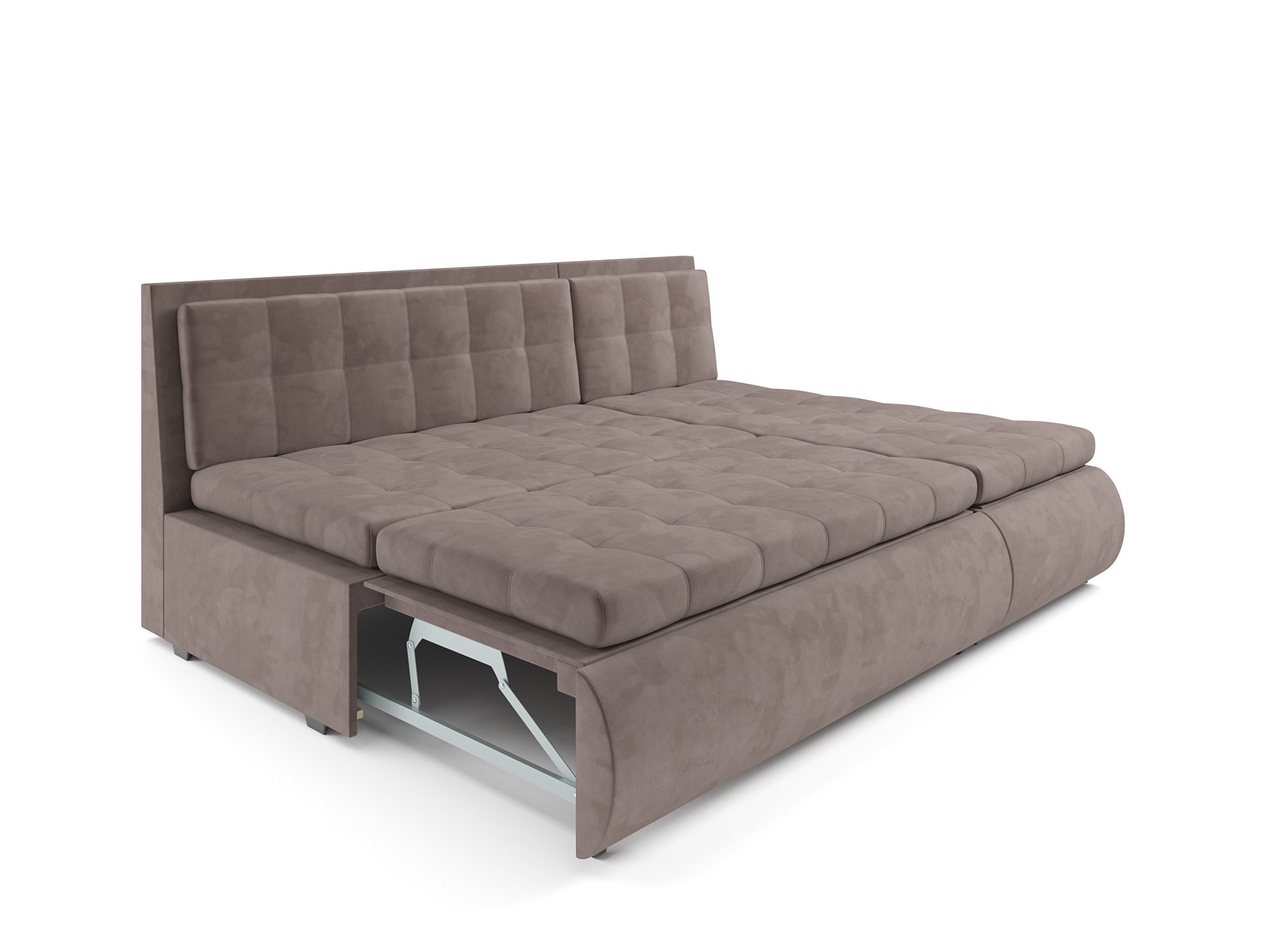 Механизм раскладывания «Дельфин» обеспечивает надежность и безопасность при ежедневном использовании дивана как полноценного спального места. Полезная площадь спального места углового дивана без подлокотников составляет 140×200 см.