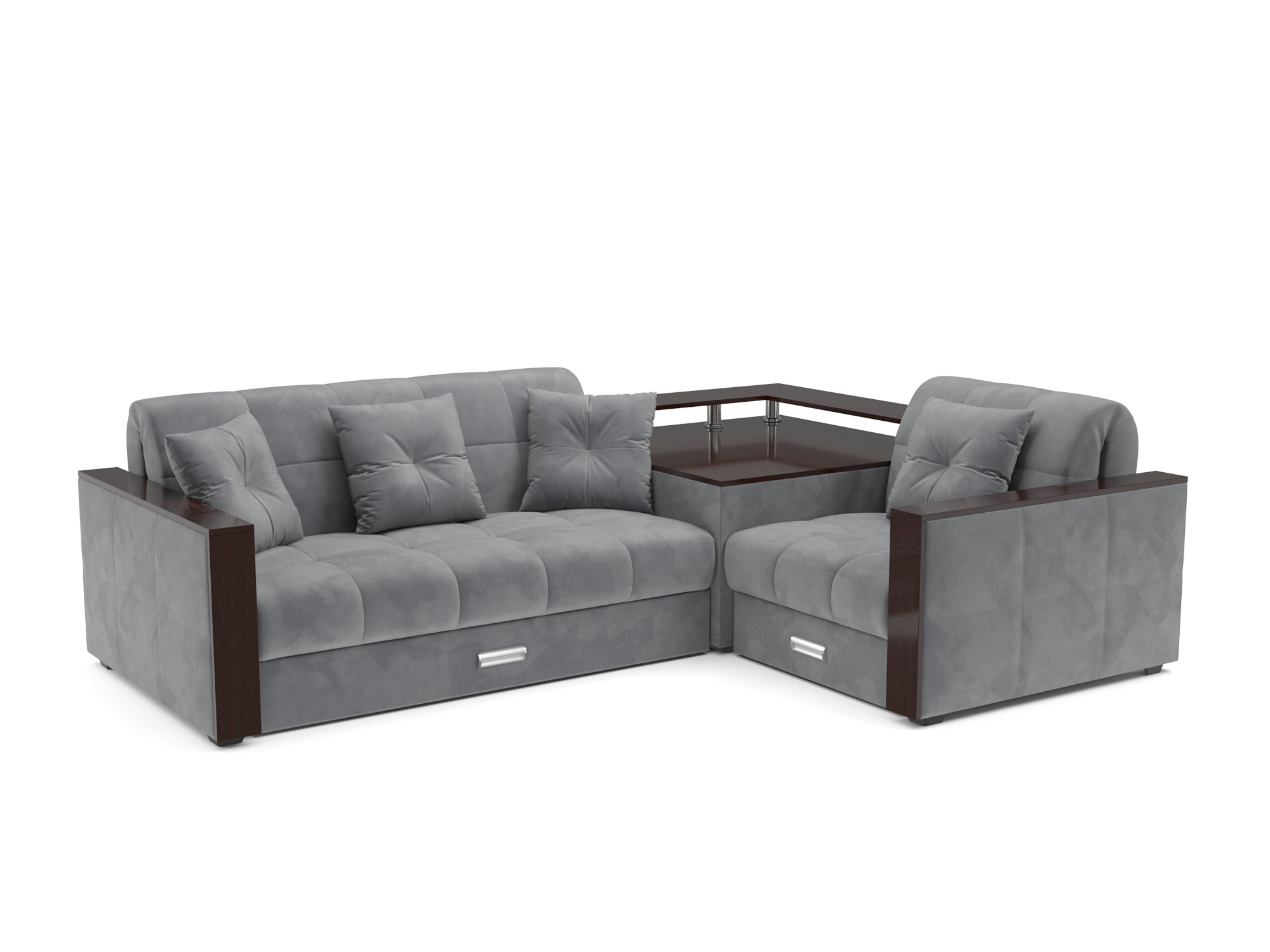 Особенно полюбится вашим домочадцам просторный столик-бар в угловой части дивана. На него можно поставить вазу с цветами или расставить напитки для друзей и наслаждаться просмотром фильма, не отвлекаясь на лишние движения.