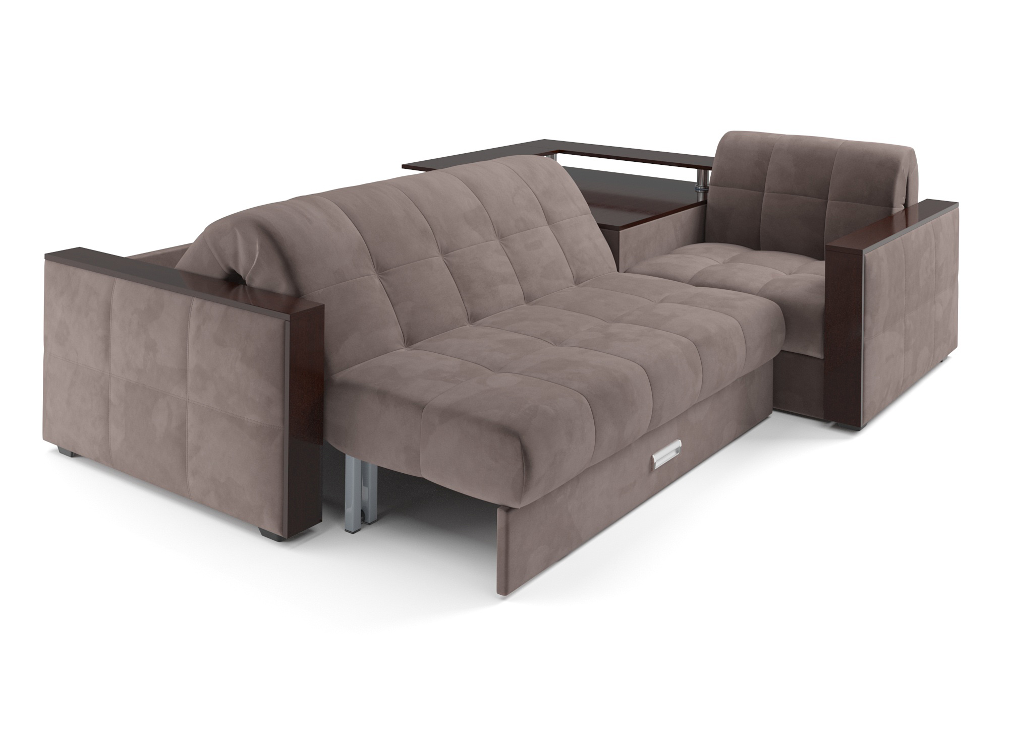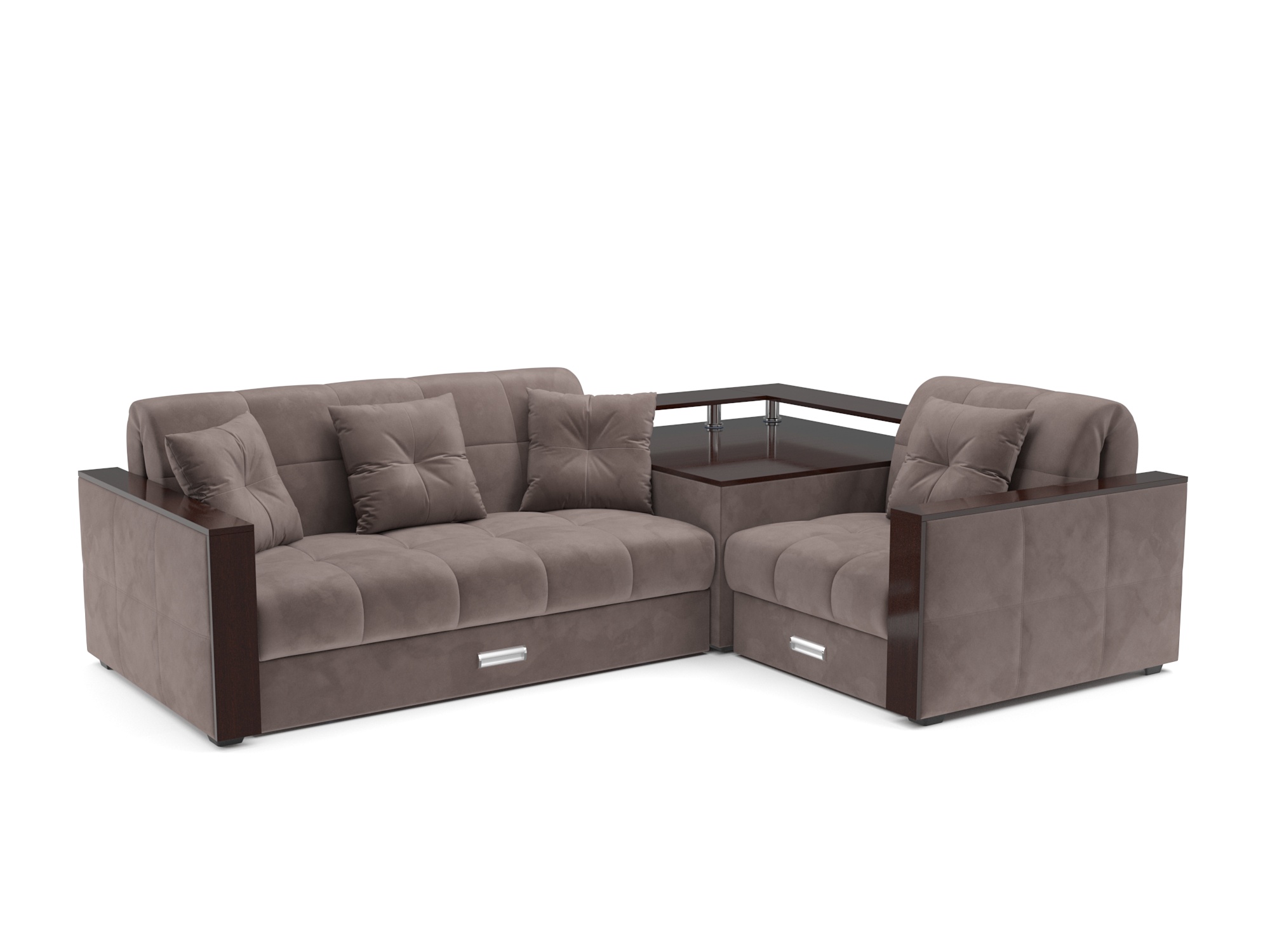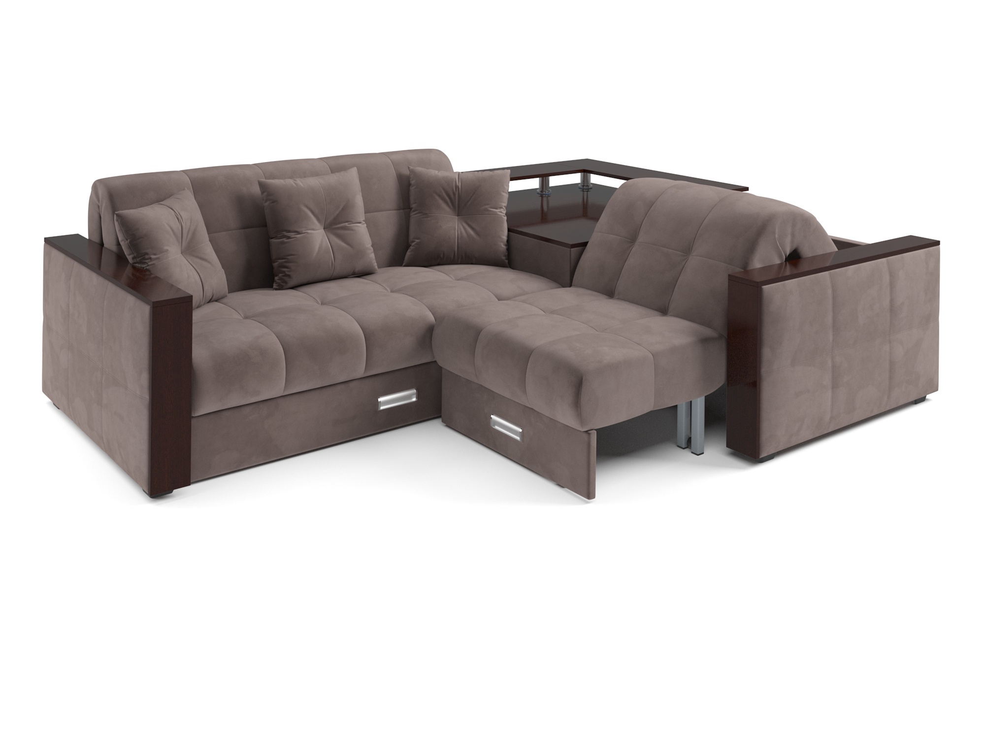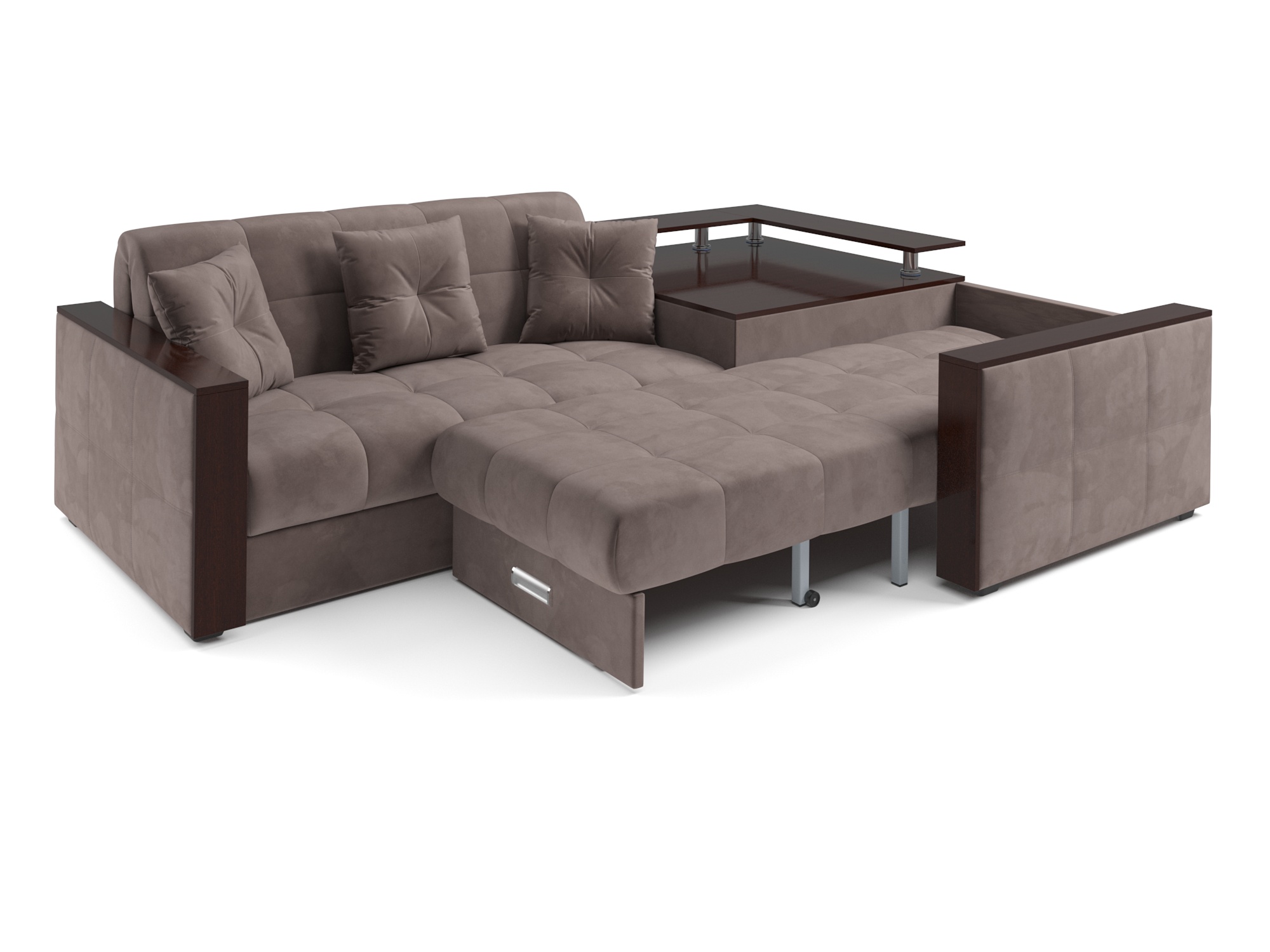 Особенно полюбится вашим домочадцам просторный столик-бар в угловой части дивана. На него можно поставить вазу с цветами или расставить напитки для друзей и наслаждаться просмотром фильма, не отвлекаясь на лишние движения.