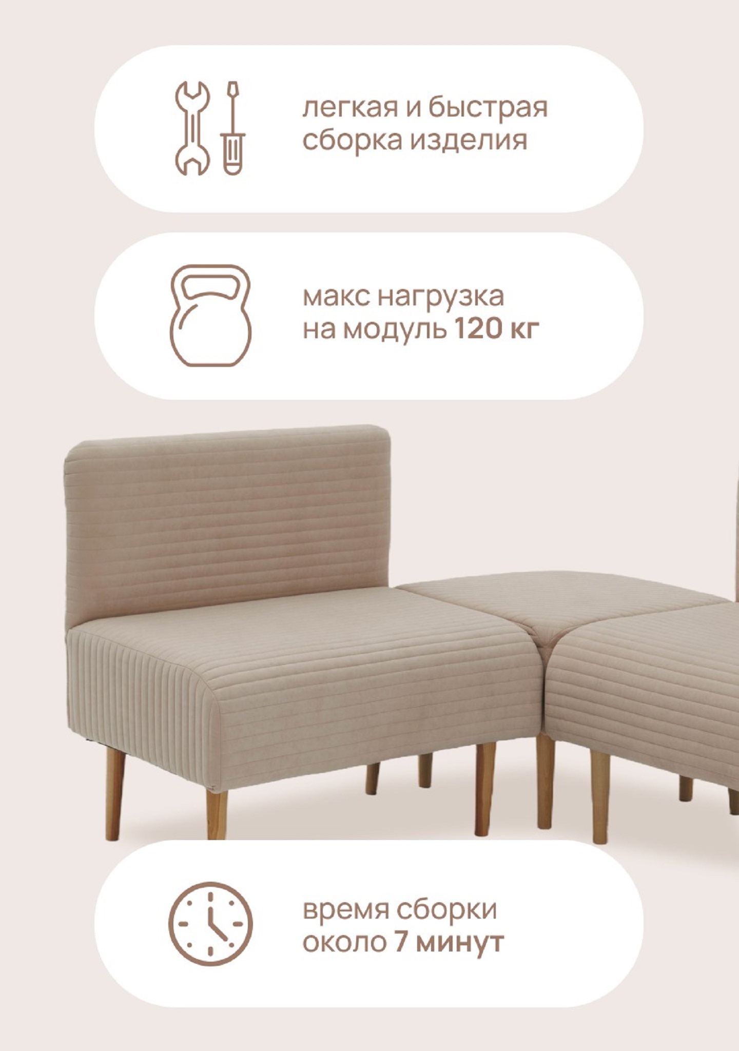 Удобный мягкий диванчик, из модульного комплекта, подойдет в любую комнату в доме.